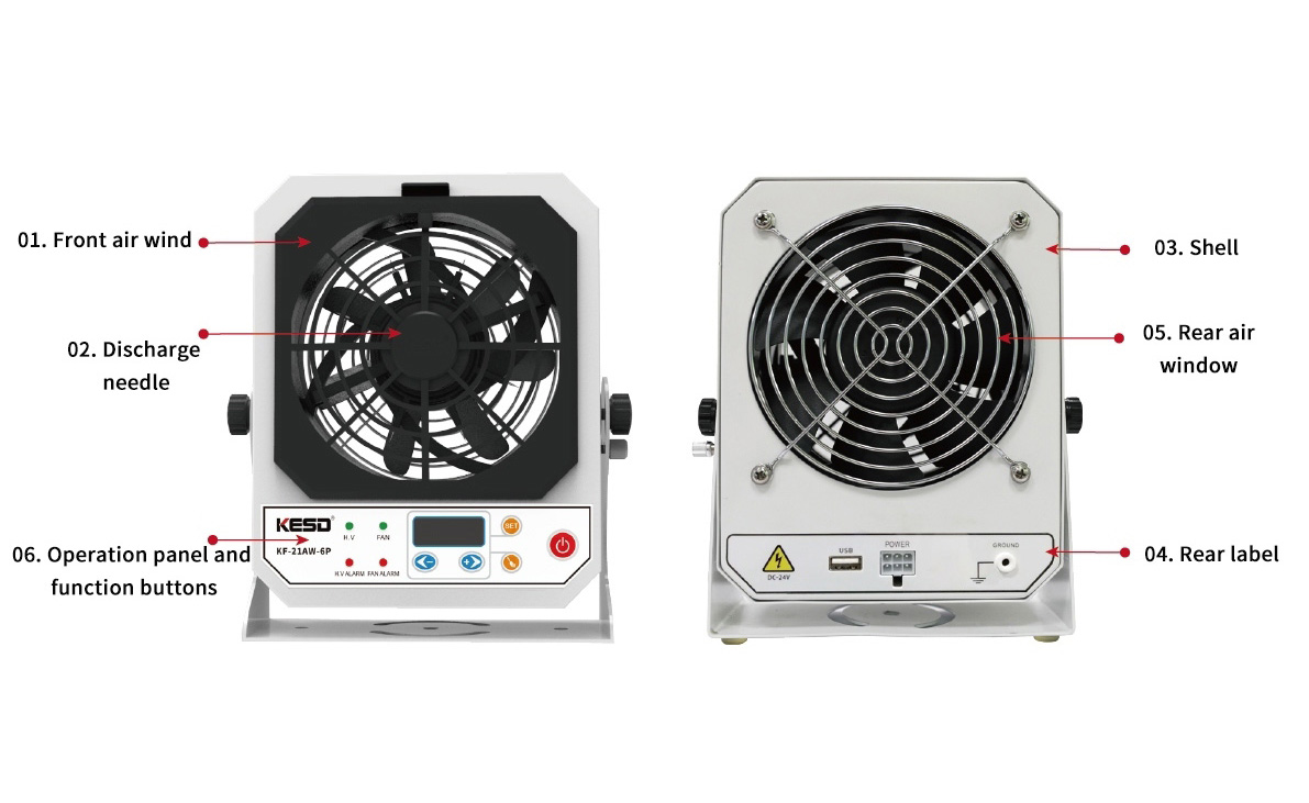 Self Cleaning Ionizing Air Blower KF-21AW-6P Desktop Auto Clean CE